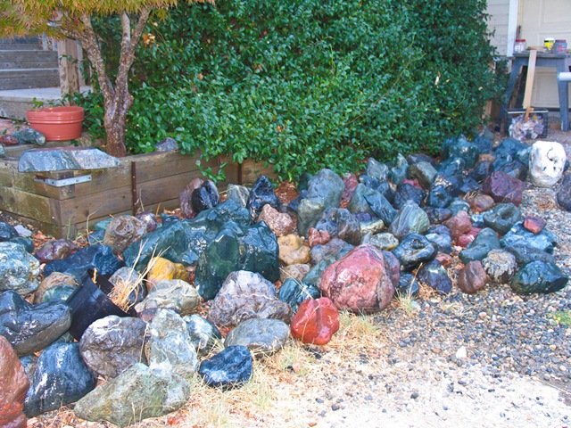 For the first 15 years or so I concentrated on learning the techniques and traditions of Japanese suiseki. At first I was very busy running my general contracting business and raising four young children, but gradually I started going tanseki (stone collecting) more often and making daiza constantly. Eventually I had so many finished suiseki – way more than 100 – that I ran out of room inside the house and started storing the stones everywhere in my yard.